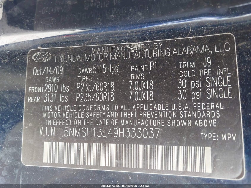 • 5NMSH13E49H333037