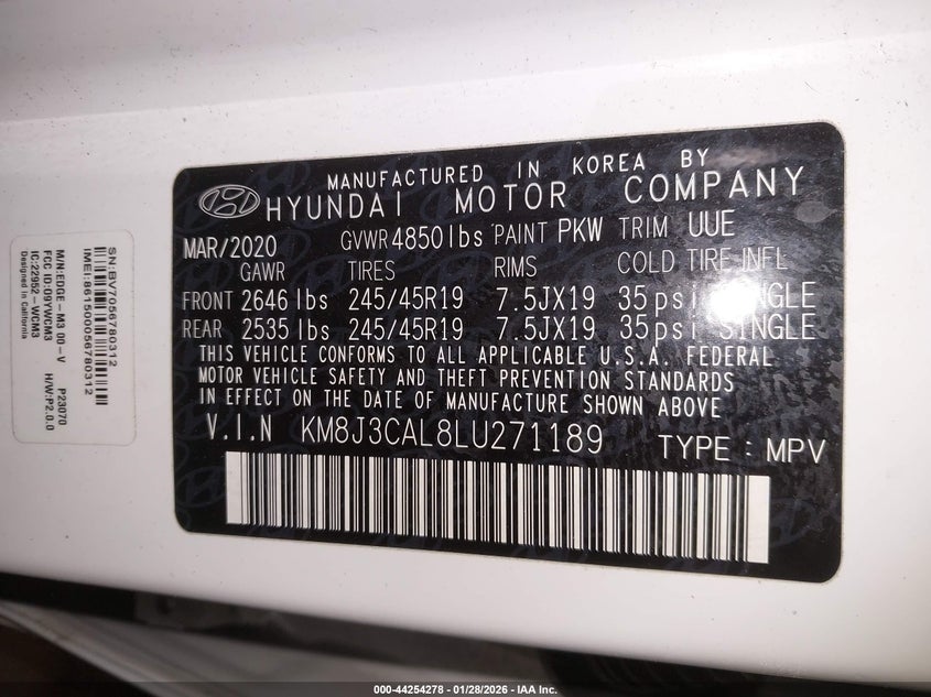 • KM8J3CAL8LU271189