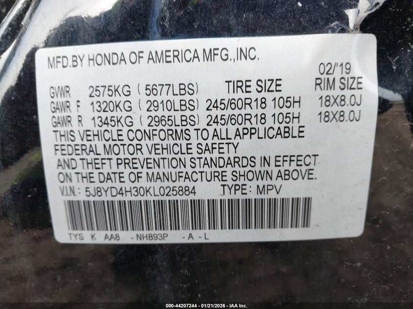 • 5J8YD4H30KL025884