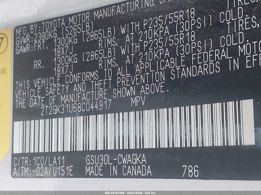 • 2T2GK31U68C044917