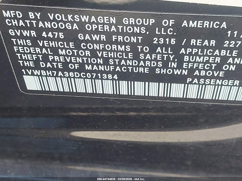 • 1VWBH7A36DC071384