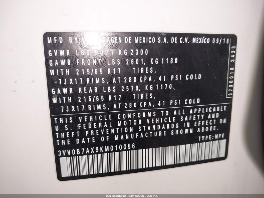 • 3VV0B7AX9KM010056