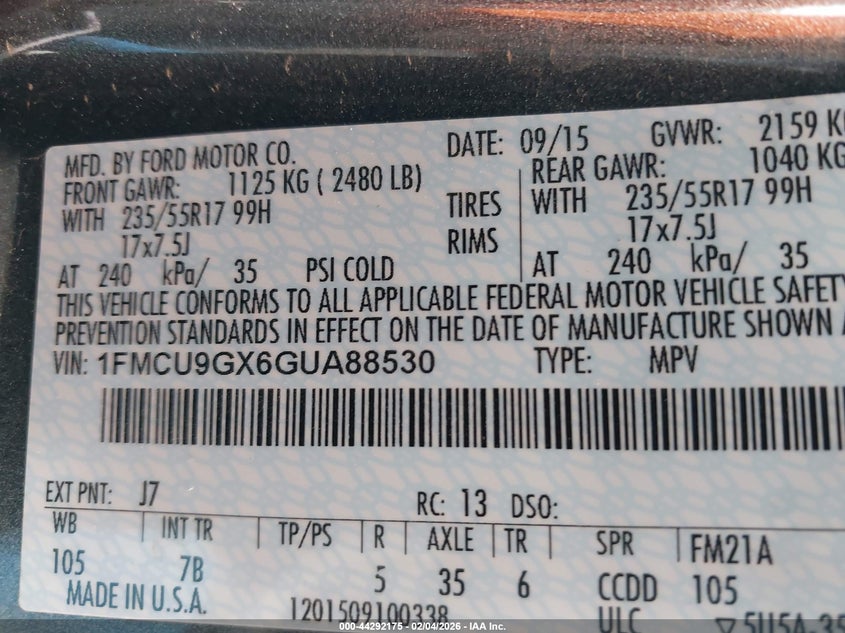 • 1FMCU9GX6GUA88530