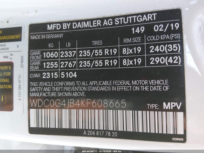 • WDC0G4JB4KF608665