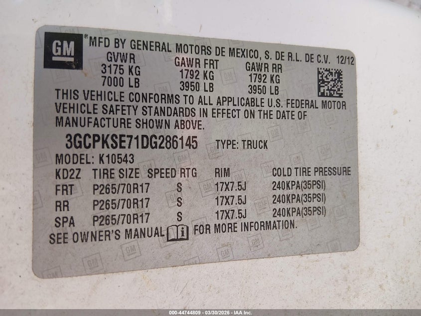 • 3GCPKSE71DG286145