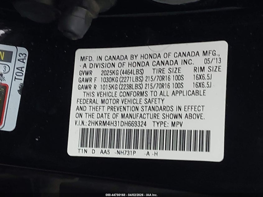 • 2HKRM4H31DH669324