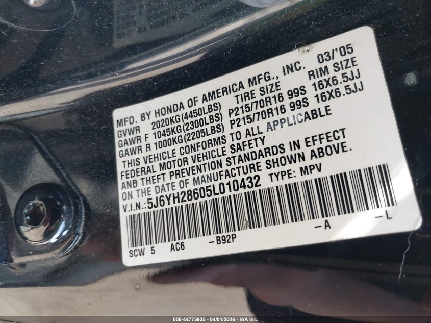 • 5J6YH28605L010432