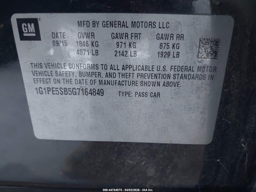 • 1G1PE5SB5G7164849