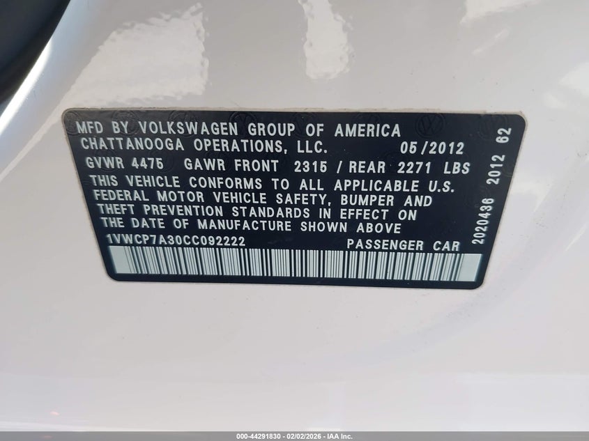 • 1VWCP7A30CC092222