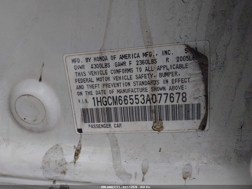 • 1HGCM66553A077678
