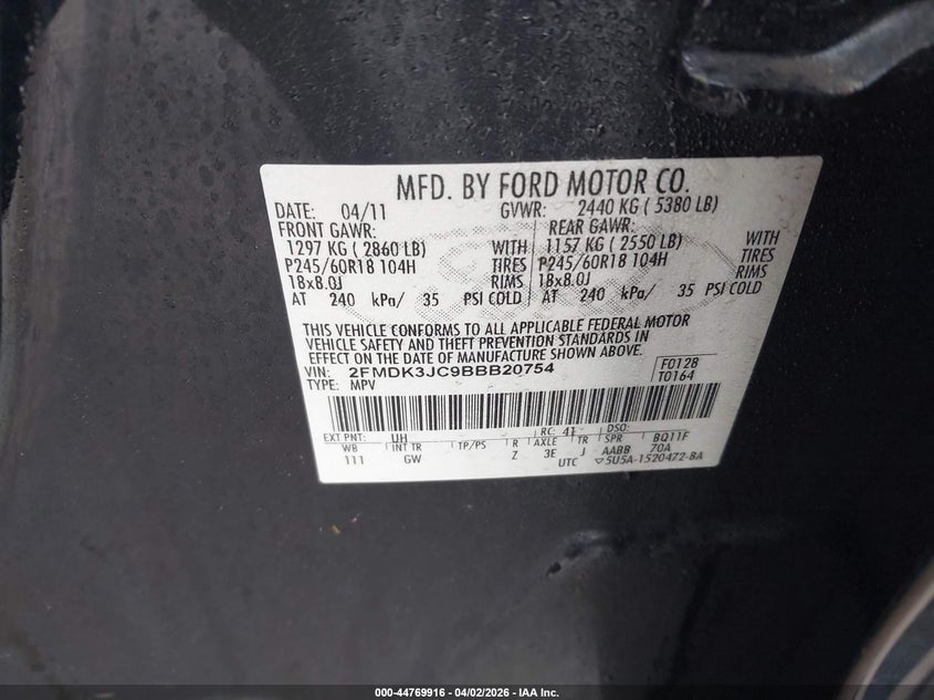 • 2FMDK3JC9BBB20754