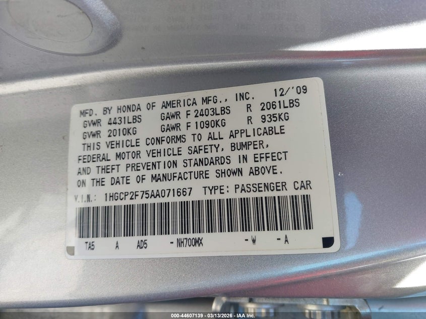 • 1HGCP2F75AA071667