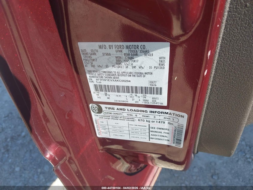 • 1FTFW1EVXAKC00294