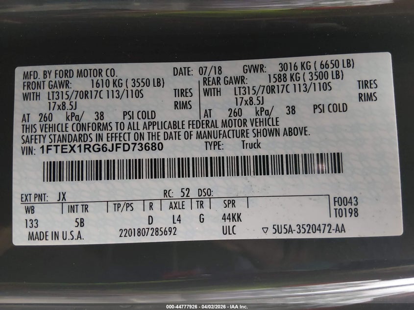 • 1FTEX1RG6JFD73680