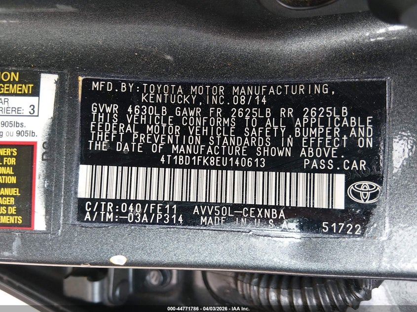 • 4T1BD1FK8EU140613