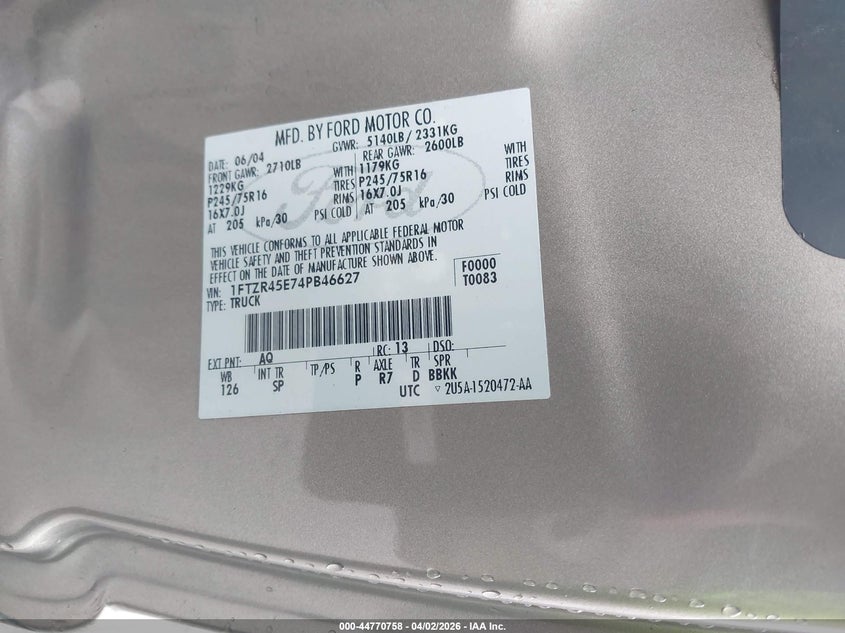 • 1FTZR45E74PB46627