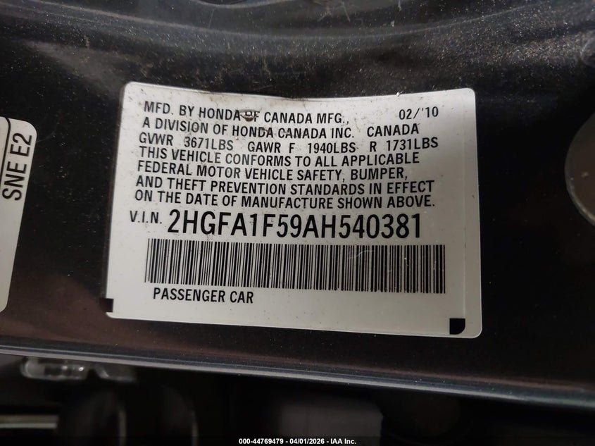 • 2HGFA1F59AH540381