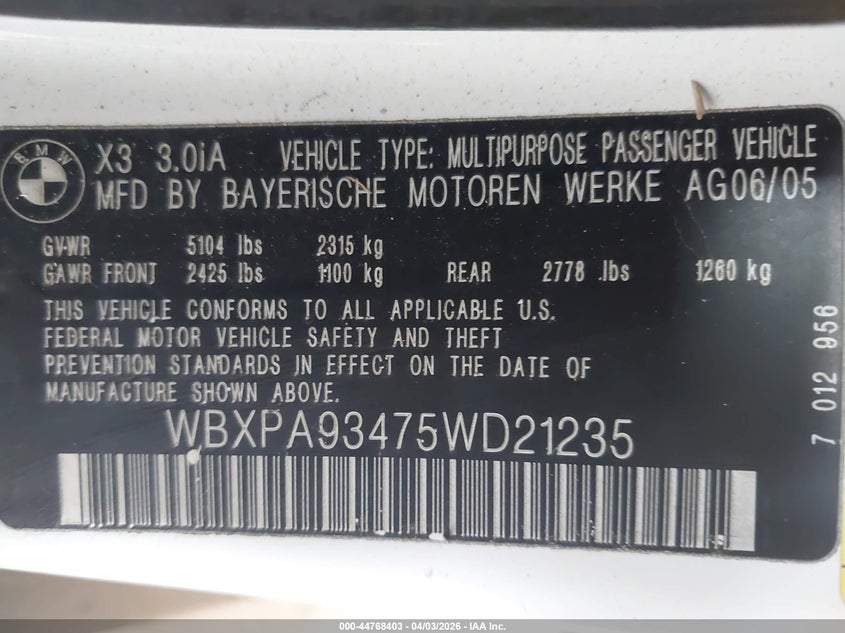 • WBXPA93475WD21235
