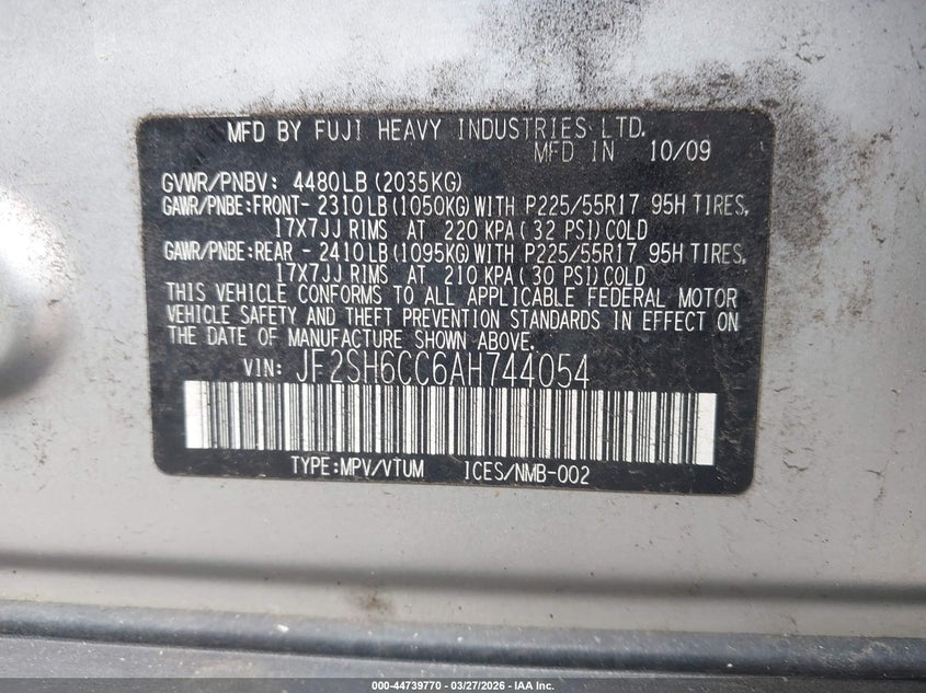 • JF2SH6CC6AH744054