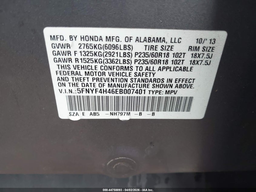 • 5FNYF4H46EB007401