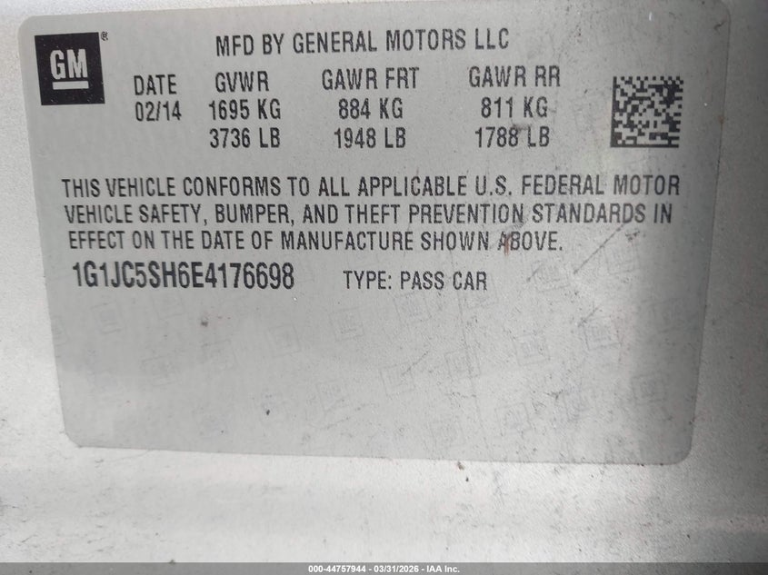 • 1G1JC5SH6E4176698
