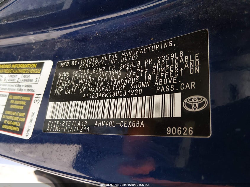 • 4T1BB46K18U031230