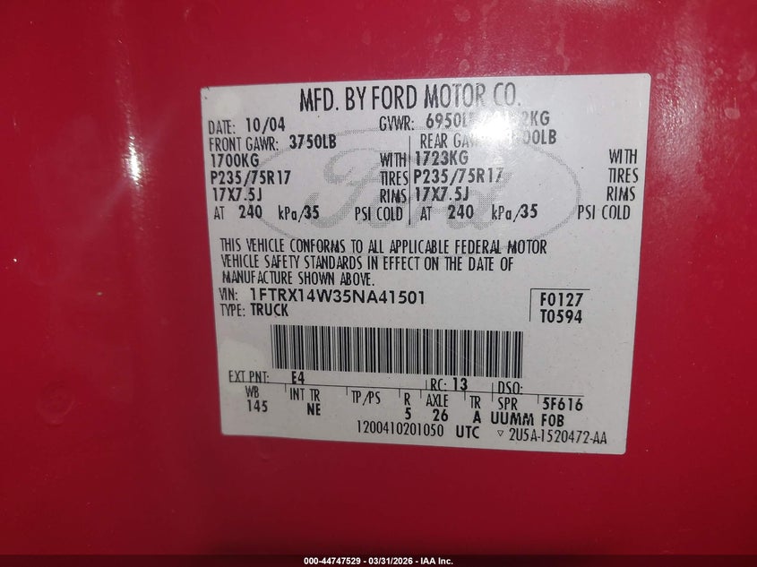 • 1FTRX14W35NA41501