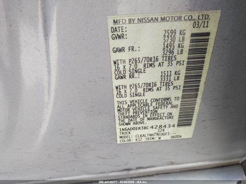 2011 NISSAN FRONTIER SV for Sale in Orlando, FL