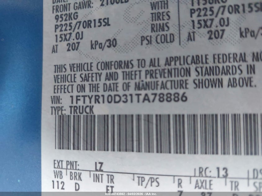 • 1FTYR10D31TA78886