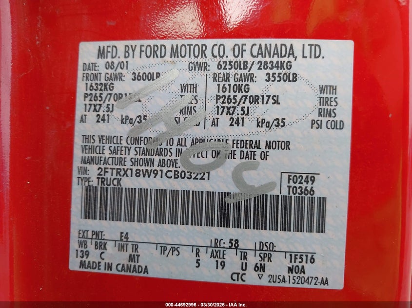 • 2FTRX18W91TB03221