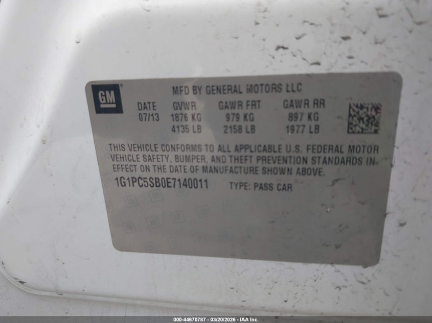 2014 CHEVROLET CRUZE 1LT AUTO for Sale in York Springs, PA