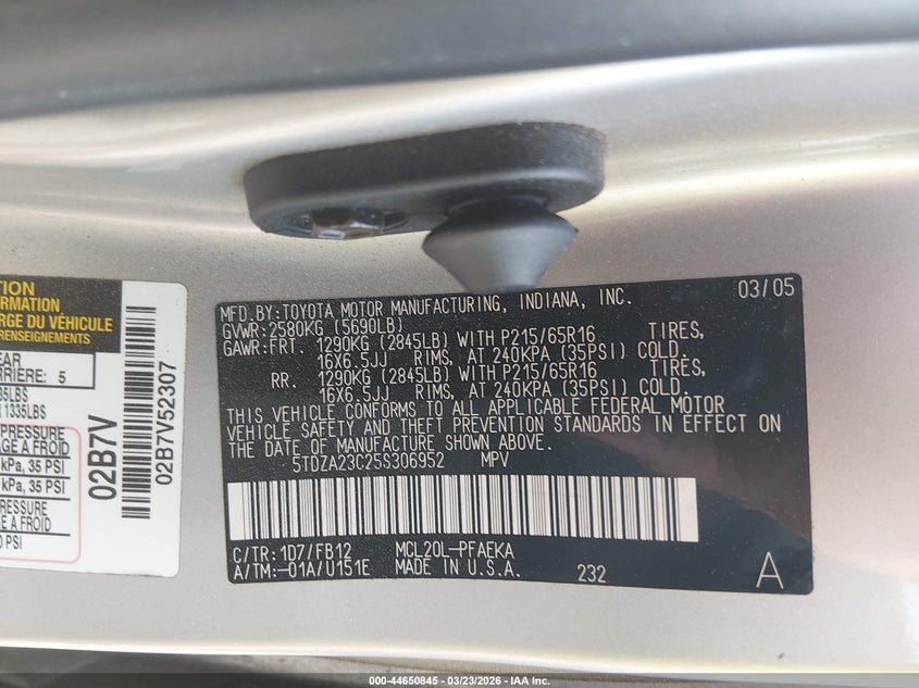 • 5TDZA23C25S306952