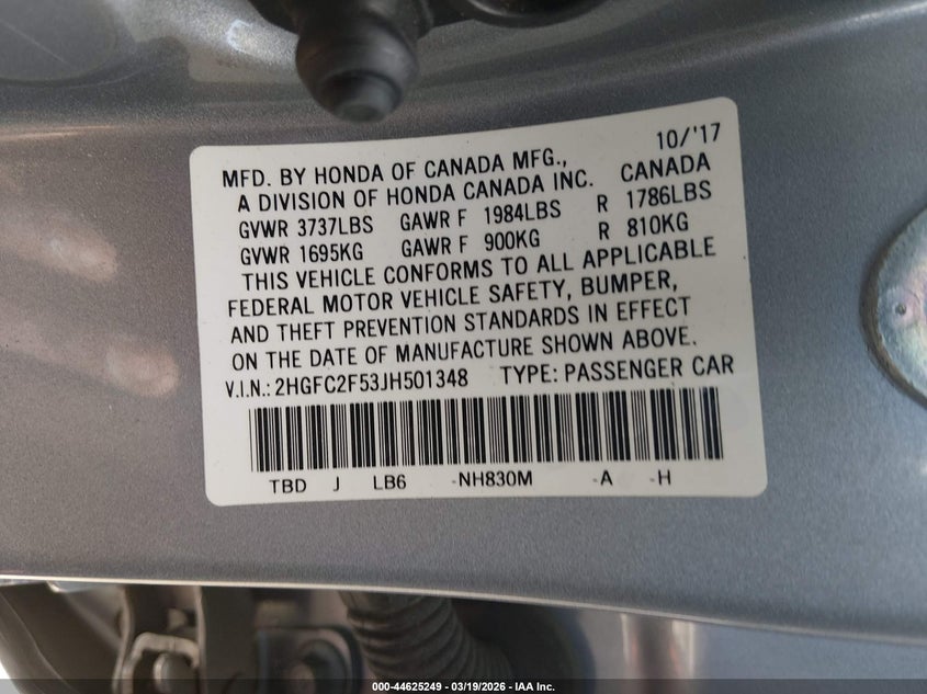 • 2HGFC2F53JH501348