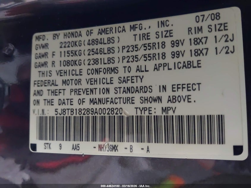 • 5J8TB18289A002820