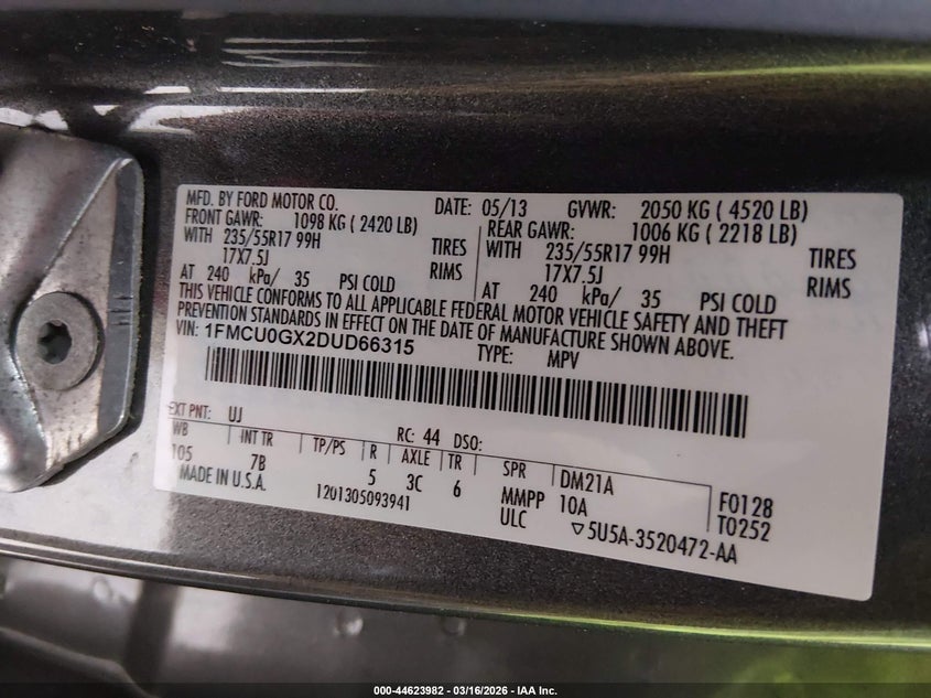• 1FMCU0GX2DUD66315
