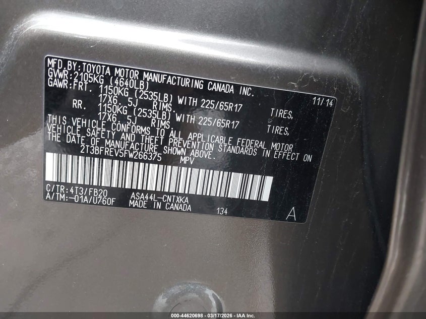 • 2T3BFREV5FW266375