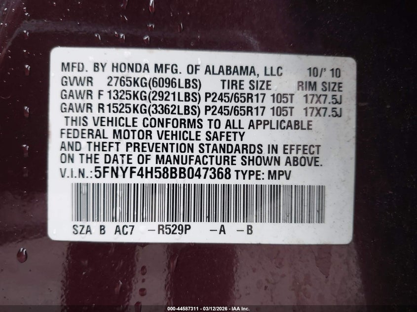 • 5FNYF4H58BB047368