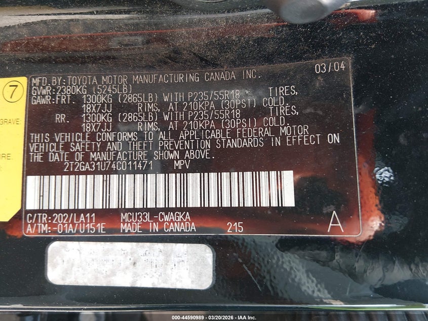 • 2T2GA31U74C011471