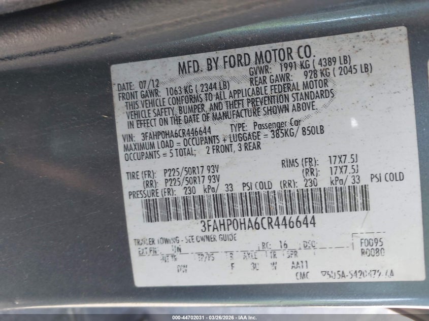 • 3FAHP0HA6CR446644