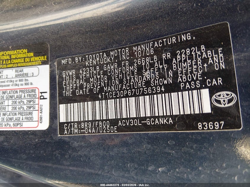 • 4T1CE30P67U756394