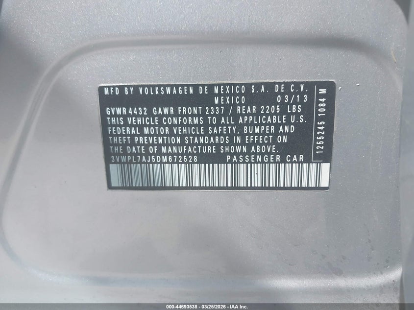 • 3VWPL7AJ5DM672528