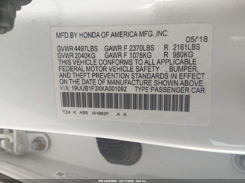 • 19UUB1F3XKA001092