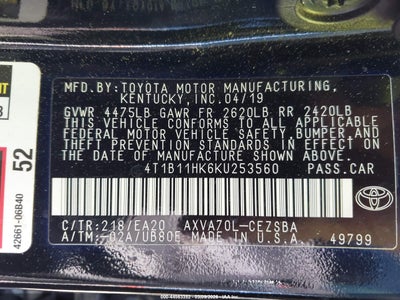 • 4T1B11HK6KU253560