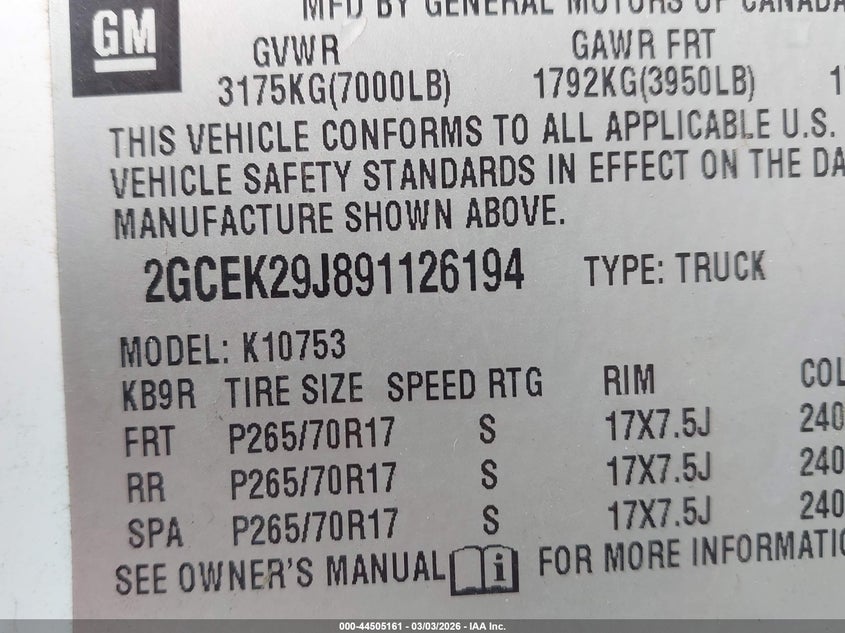 • 2GCEK29J891126194