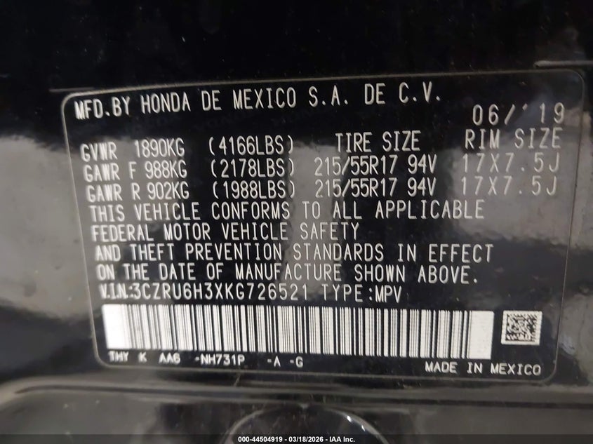 2019 HONDA HR-V LX for Sale in Rock Tavern, NY