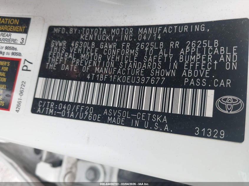 • 4T1BF1FK0EU397677