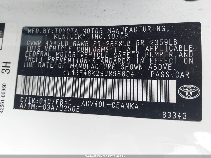 • 4T1BE46K29U896894