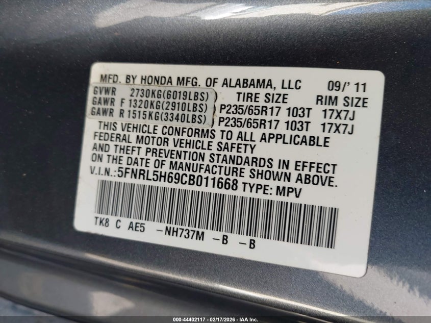 • 5FNRL5H69CB011668