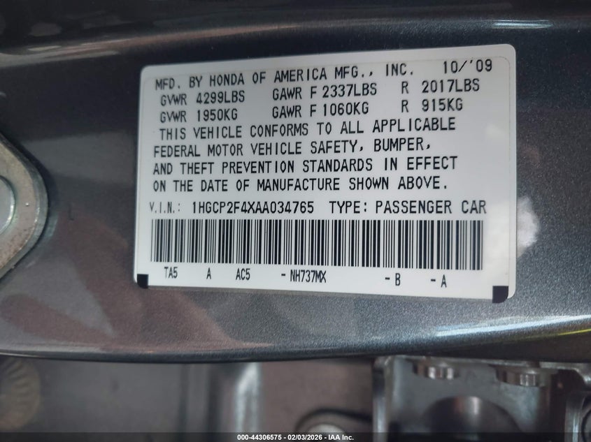 • 1HGCP2F4XAA034765