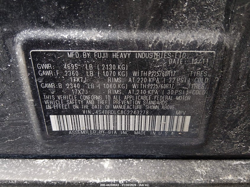 • 4S4BRDLC8C2243278